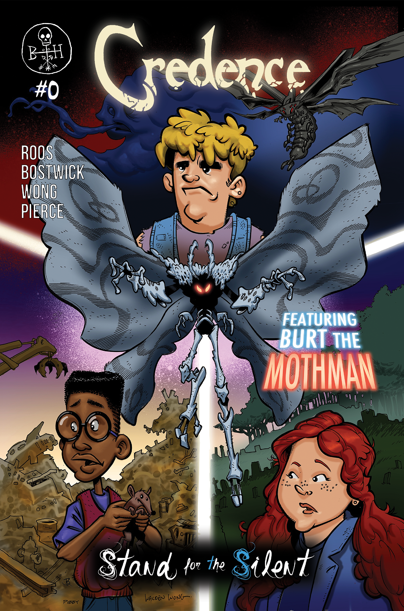 Credence #0 is an exciting story of three children dealing with bullying, depression, and suicidal thoughts who are caught between powerful forces. On one end a dark creature that amplifies their pain and turns them into horrific monsters. On the other, the Mothman simply known as Burt.