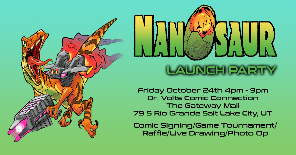 Join us for the official Nanosaur Launch Party at Dr. Volts Comic Connection in The Gateway Mall, Salt Lake City!
